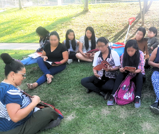 A roda de Carapicuíba aconteceu no dia 20, no Parque do Planalto, com a mediadora Josiane Sampaio, e teve a participação de 11 mulheres imigrantes. A conversa iniciou-se com um debate sobre as percepções do grupo em relação ao tema “Enfrentamento da Violência Contra as Mulheres”. Algumas destacaram a violência psicológica e física que geralmente acontece nas relações entre homens e mulheres. A partir dessas observações, iniciamos a leitura da cartilha “Enfrentamento à Violência Contra as Mulheres”, utilizada como subsído das rodas deste mês.